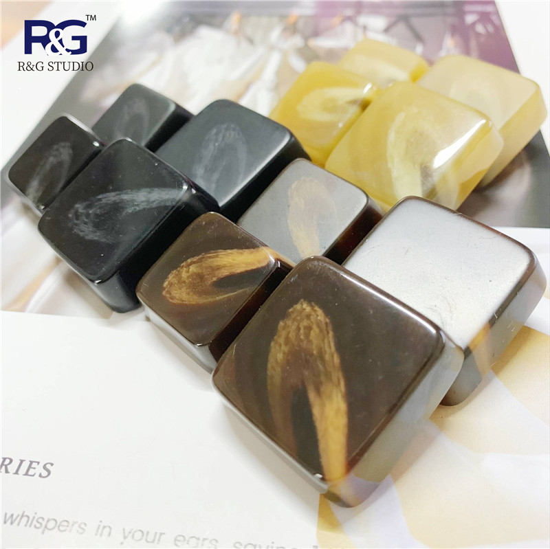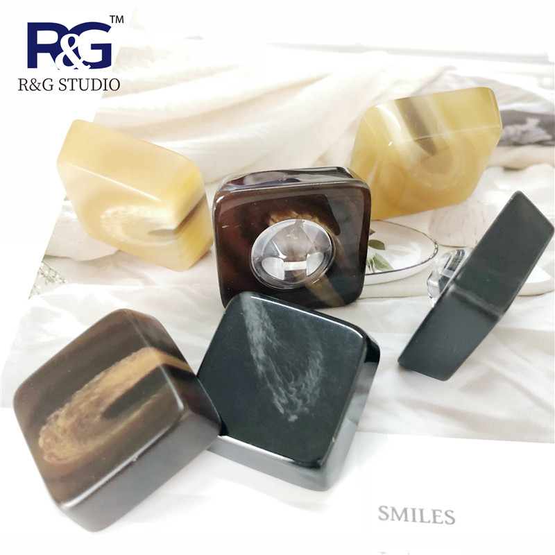 Autumn and winter new resin button women's coat coat button square button black coffee beige pattern button all-match