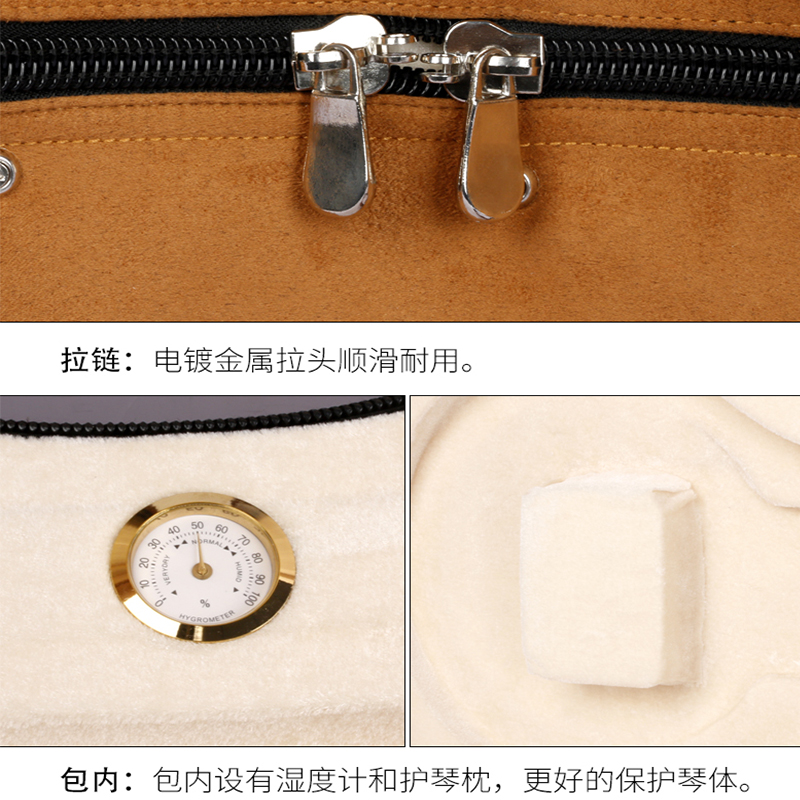 Faux deerskin velvet zhongruan box with 1 string and 1 pick, 2 black oxford cloth zhongruan box with 1 string in middle ruan High with dark brown zhongruan box (with hygrometer) High with black zhongruan box (with hygrometer)