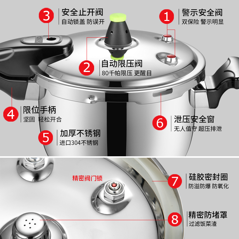 Tylock Pressure Cooker 304 stainless steel high pressure cooker home explosion gas induction cookers universal 1-2-3-4-5 people