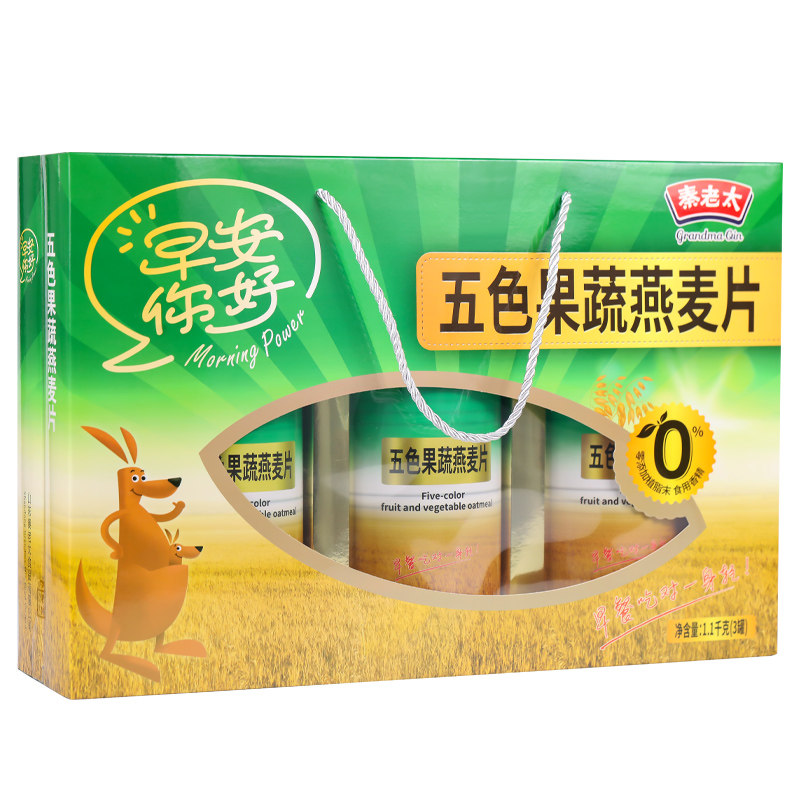 Qin Lao Too Five Colors Fruits And Vegetables Oatmeal Gift Box 1 1kg Ready-to-eat Breakfast for Brewing Drink Free of Cooked Nutritious Cereals