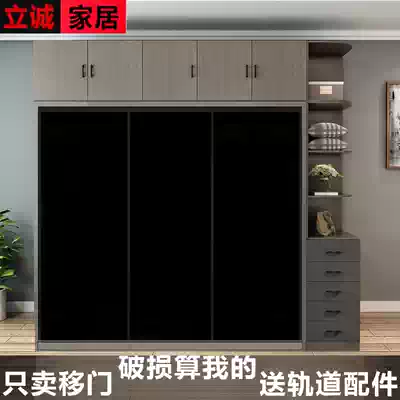 Customized gray glass wardrobe sliding door tempered glass wardrobe sliding door bathroom living room compartment door wall cabinet sliding cabinet door