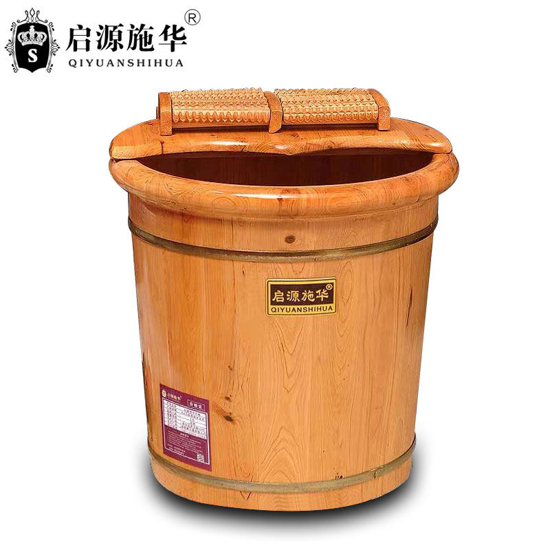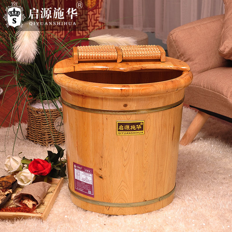 Cypress foot bath barrel Household solid wood foot bath barrel over small feet wooden foot wash basin Wooden basin plus height 40cm small female