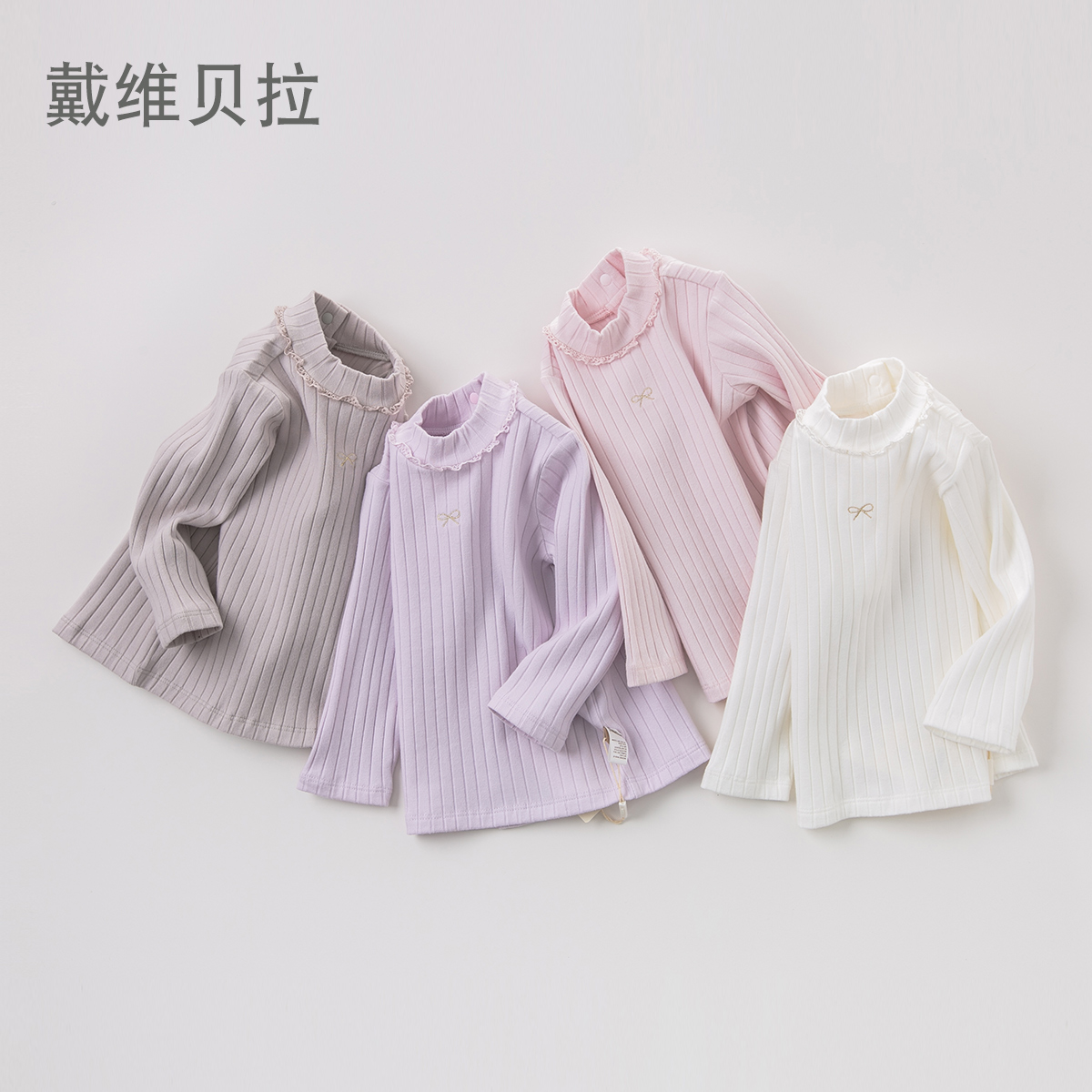 Davibella davebella children's blouses girl's fall new half-high collar warm-to-bottom T-shirt