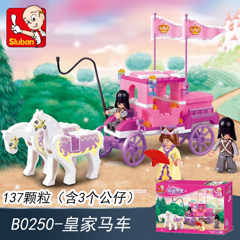 Little Luban brick pink dream princess sightseeing carriage anti-tank gun fire truck neutral assembled children's toy