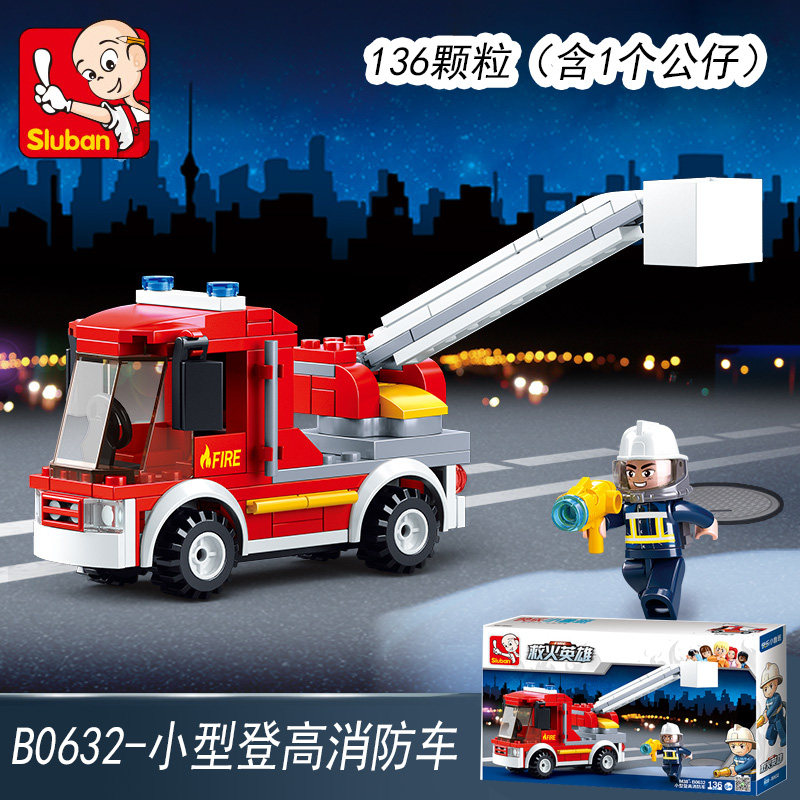(B0632) small ascending fire truck (136 particles 1 doll)