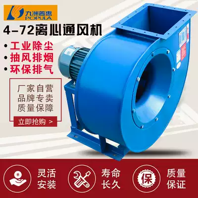 Jiuzhou Pratt & Whitney 4-72 centrifugal exhaust fan 380V industrial dust removal spray booth environmentally friendly exhaust explosion-proof high-speed fan