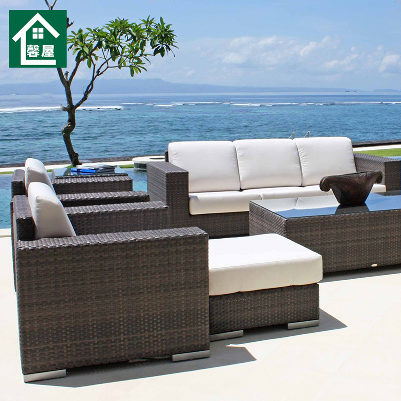Outdoor rattan sofa coffee table tempered glass combination furniture leisure open-air hotel rattan black courtyard sofa