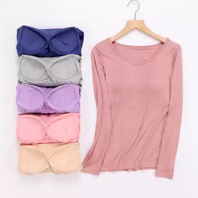 Pajamas Women Spring and Autumn with Chest Pads base shirt Long Sleeve T-shirt Modal Bra Cup One Home Clothes Top Winter