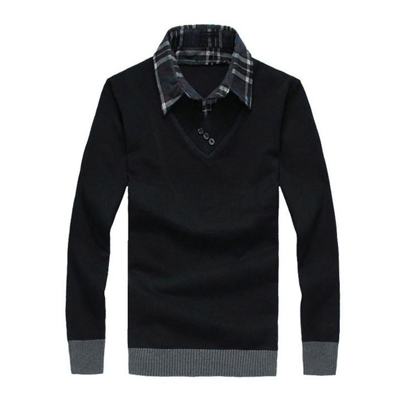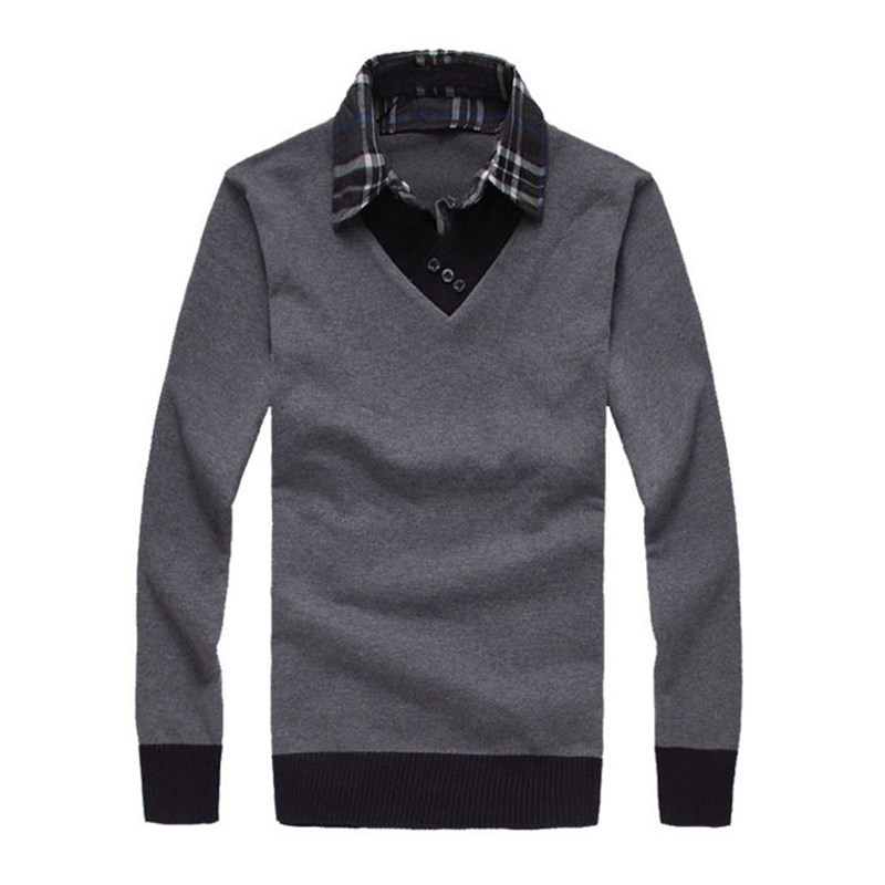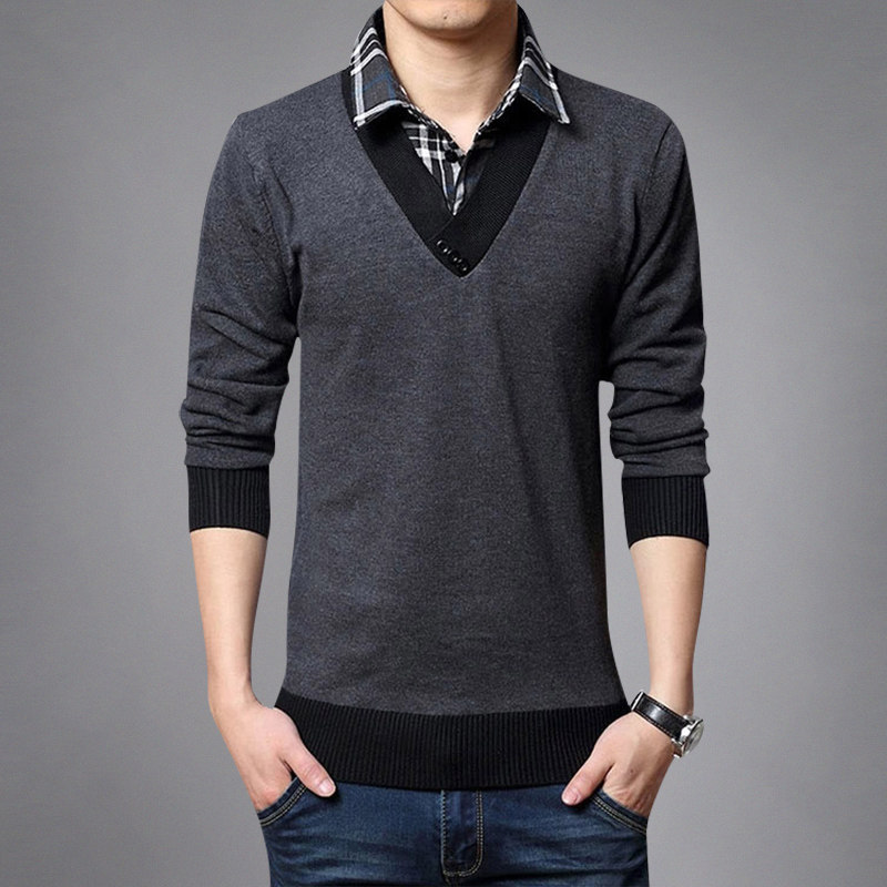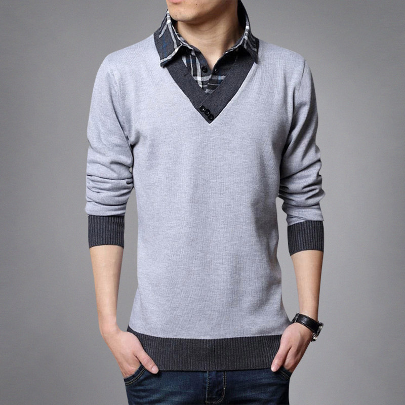 Long sleeves T-shirt men's spring autumn season thin and fake two shirts collar sweatshirt sweatshirt hooded sweatshirt hooded sweatshirt