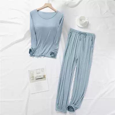 Women with chest pad pajamas Modal cotton long sleeve trousers set women loose large size moon clothes pajamas summer