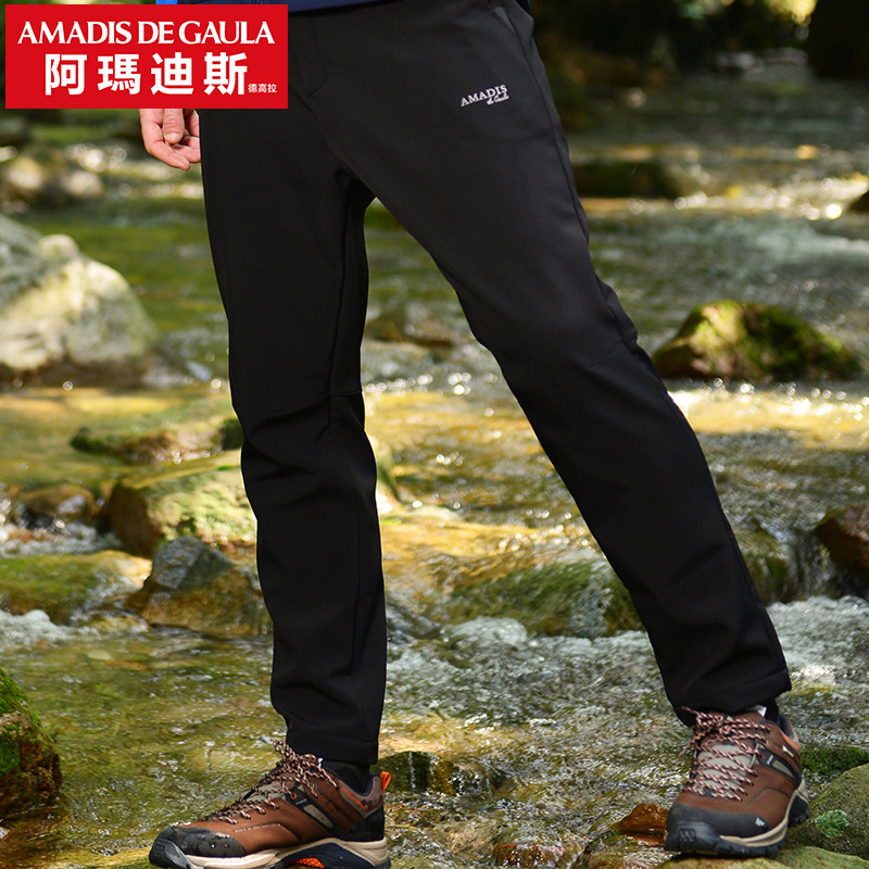 Ahmadis Punching Pants Men's Autumn Winter Warm Plus Suede Thickened Elastic Outdoor Soft Shell Pants Fishing Pants Waterproof Windproof
