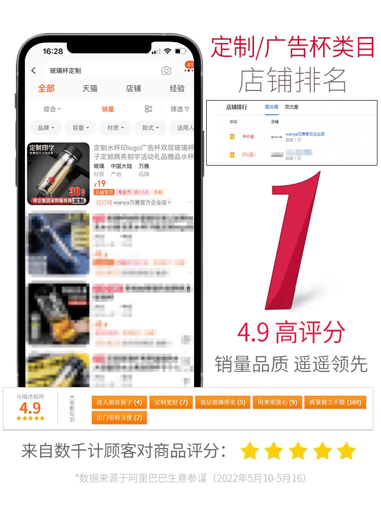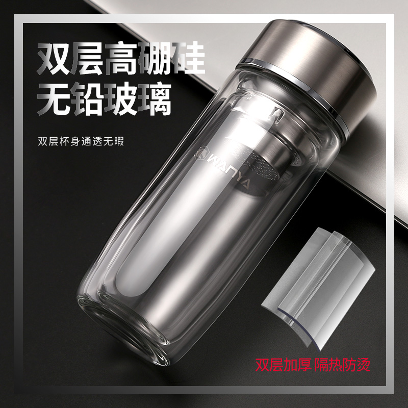 Water cup custom logo high-end tea cup men's double-layer glass custom printing gift opening commemorative water cup