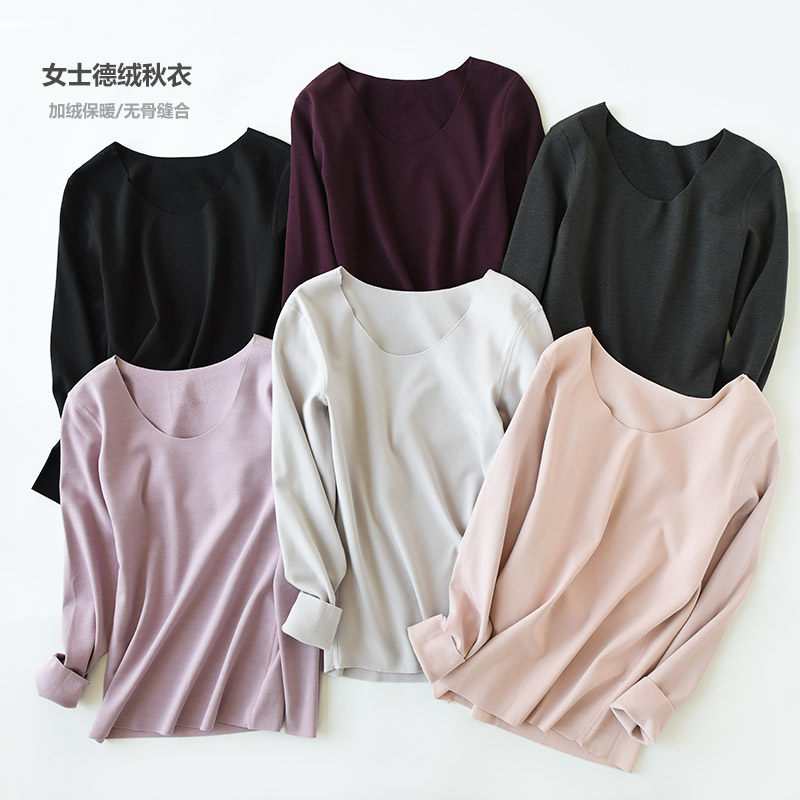 Feel free to cut hot German velvet bottom shirt plus velvet long-sleeved T-shirt Women's big round collar autumn clothes boneless stitching autumn and winter