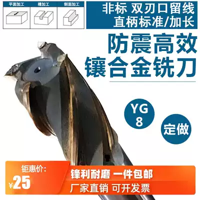 Inlaid alloy straight shank spiral end mill Hard tungsten steel welding edge Welding cutting three-edged washing knife 10-50 non-standard