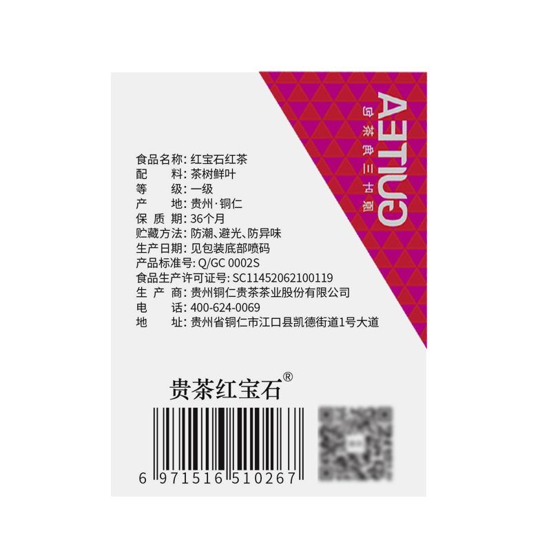 Guizhou Guicha Ruby black tea Original leaf triangle tea bag 20g boxed independent bag First-class tea