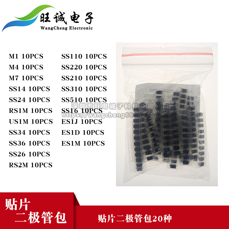 Common diode component package 8 kinds of a total of 100 electronic plug-in package sample package 1N4148 1N4007, etc