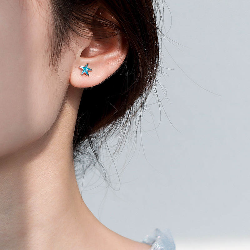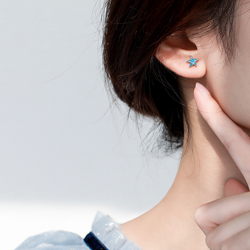 925 Pure Silver Small SeaStar Earshot Woman 2021 New Tide Brief About Small Blue Star Earrings Children Earrings
