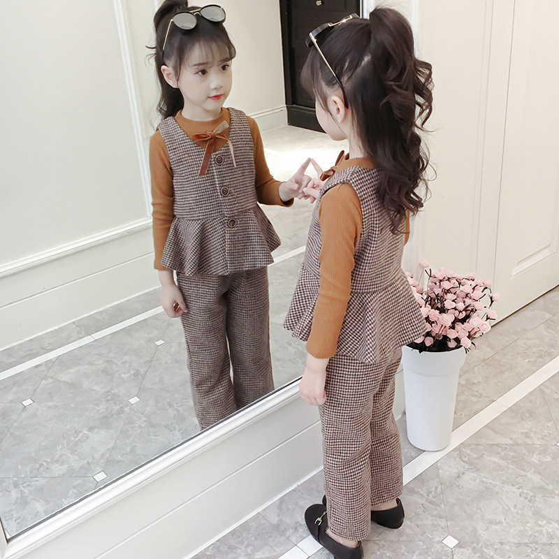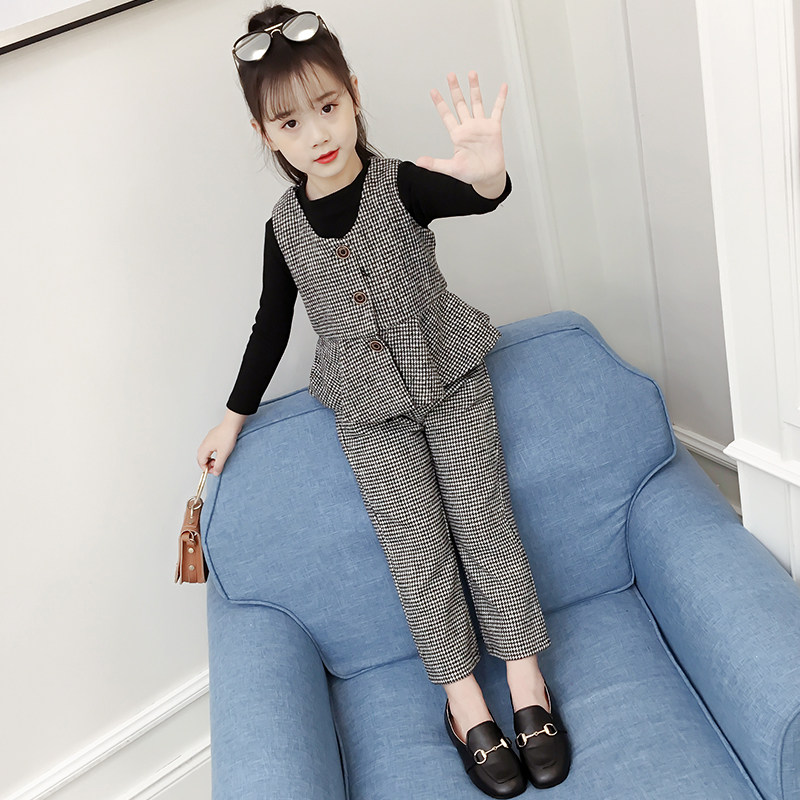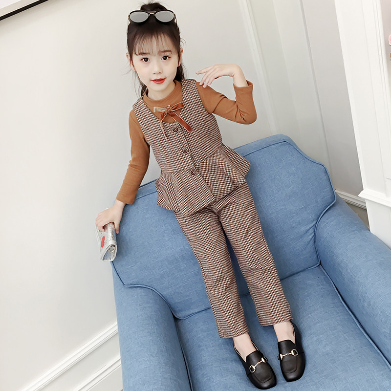 Children's clothing girls ' autumn 2021 new Korean version of the net red suit Children's fashionable Foreign school girls spring and autumn three-piece set tide