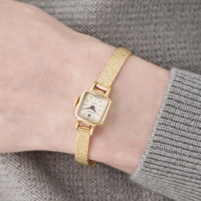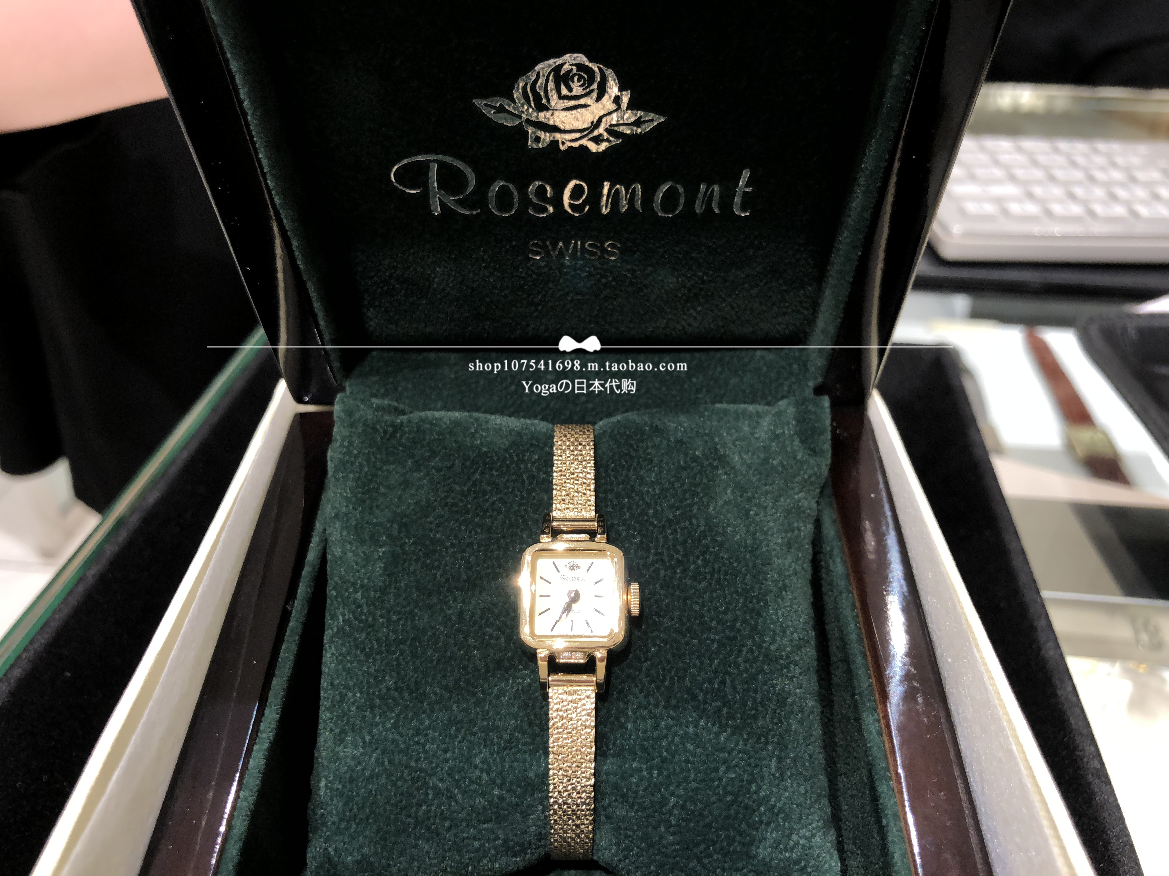 Japan Direct Mail Rosemont Swiss Made Rose Zircon Small Square Plate Metal Strap Watch