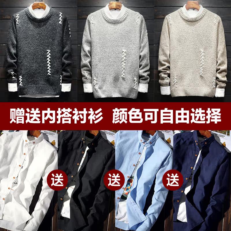 Sweater men's Han version Body Trend Thickening of the Personality Beating of the Bottom Pin-knitted sweatshirt Autumn Winter Round Collar Loose Wool clothing
