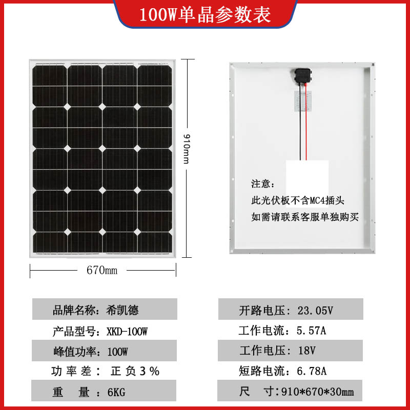 New solar panel 100W single crystal 12V home photovoltaic power generation panel system home