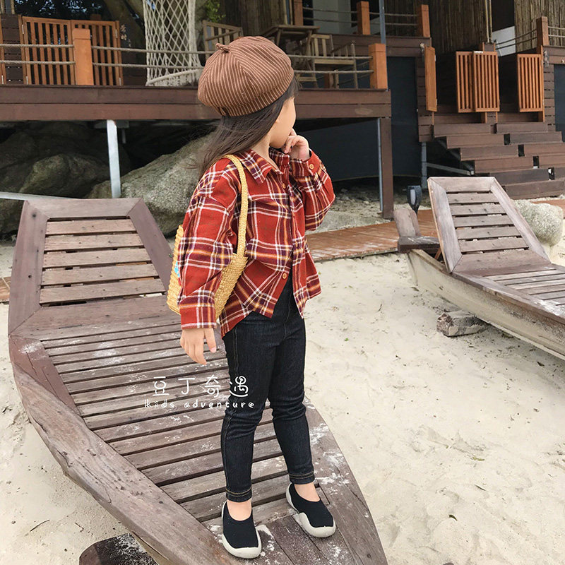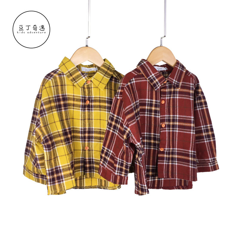 Bean Tints Meet Children's Clothing Boys Girl Autumn/Winter Han Edition New Baby Long Sleeve Graced Children's Plaid Shirt Blouses