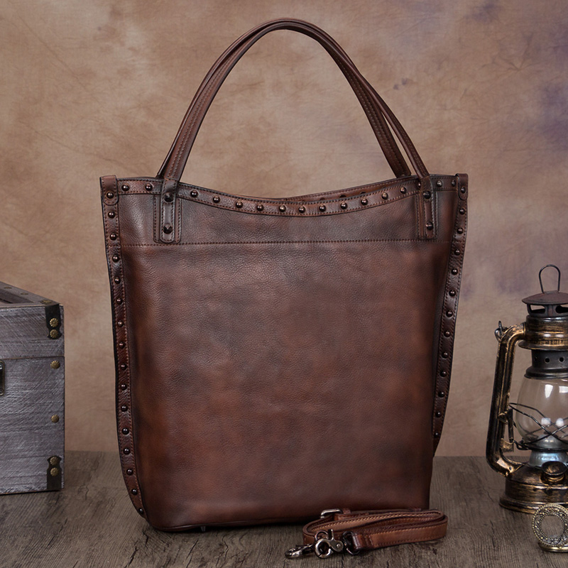 Bull Leather Retro Bag Genuine Leather Girl Bag Big Bag Girl Single Shoulder Bag Woman Big Bag Inclined Satchel Women's 2022 New Large Capacity
