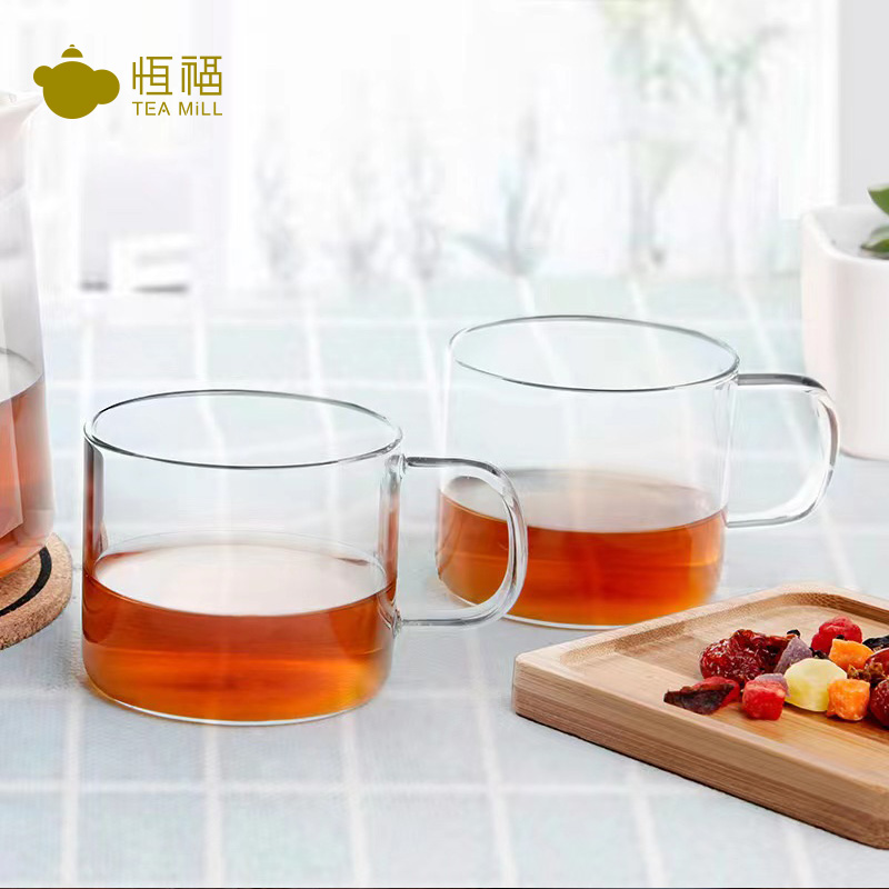 Hengfu tea toilet hand-made heat-resistant glass with handle glass cup cup household coffee cup combination