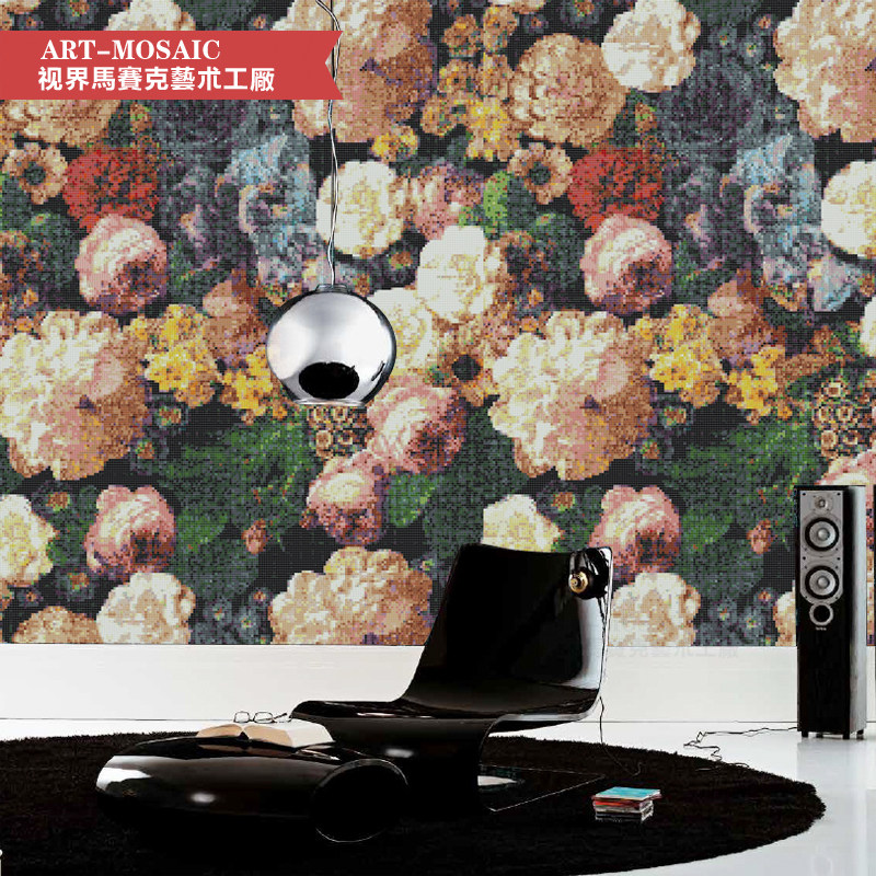 Mosaic glass background wall Hundred Flowers Tug Rose Puzzle Makeup Room Wall Stickup Parquet Parquet Tile Mural Painting