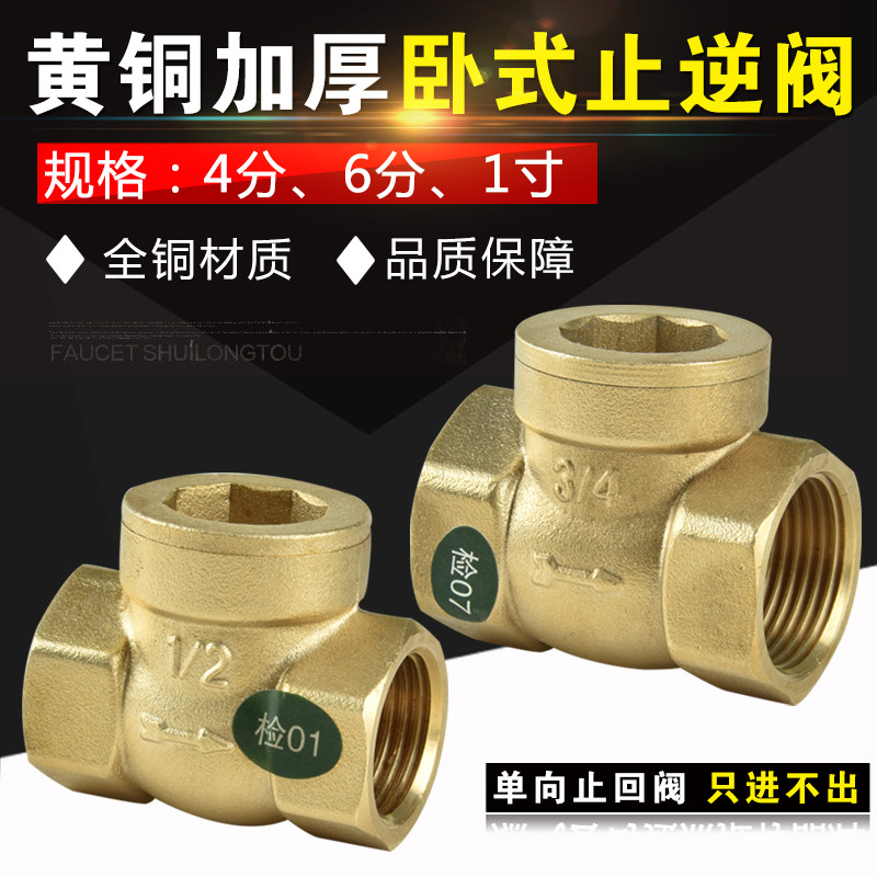 Brass horizontal check valve full copper thickened stop inverse valve water pump stop inverse valve 4 points 6 points 1 inch water stop valve