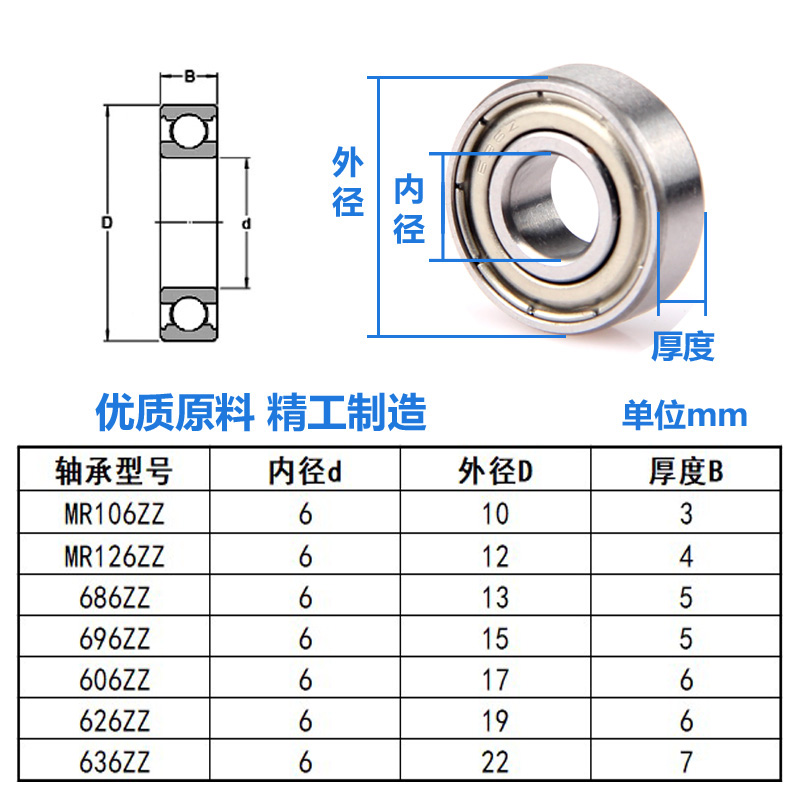 MR106ZZ Bearing steel 6*10*3mmMR106ZZ Boutique grade 6*10*3mmMR126ZZ Bearing steel 6*12*