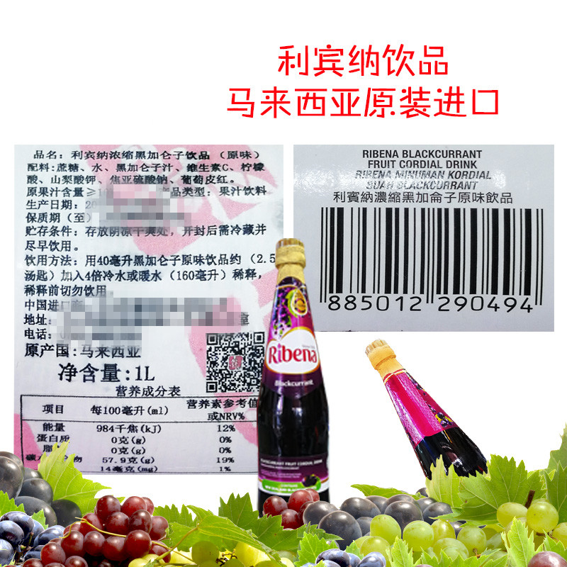 1L Ribena concentrated Blackcurrant seed juice Malaysia imported Ribena grape juice juice concentrate