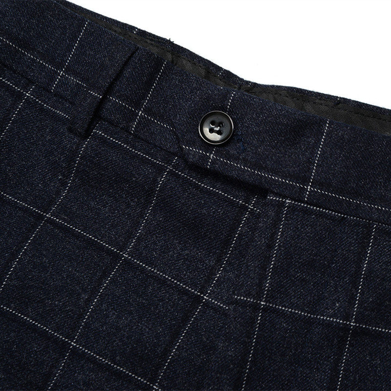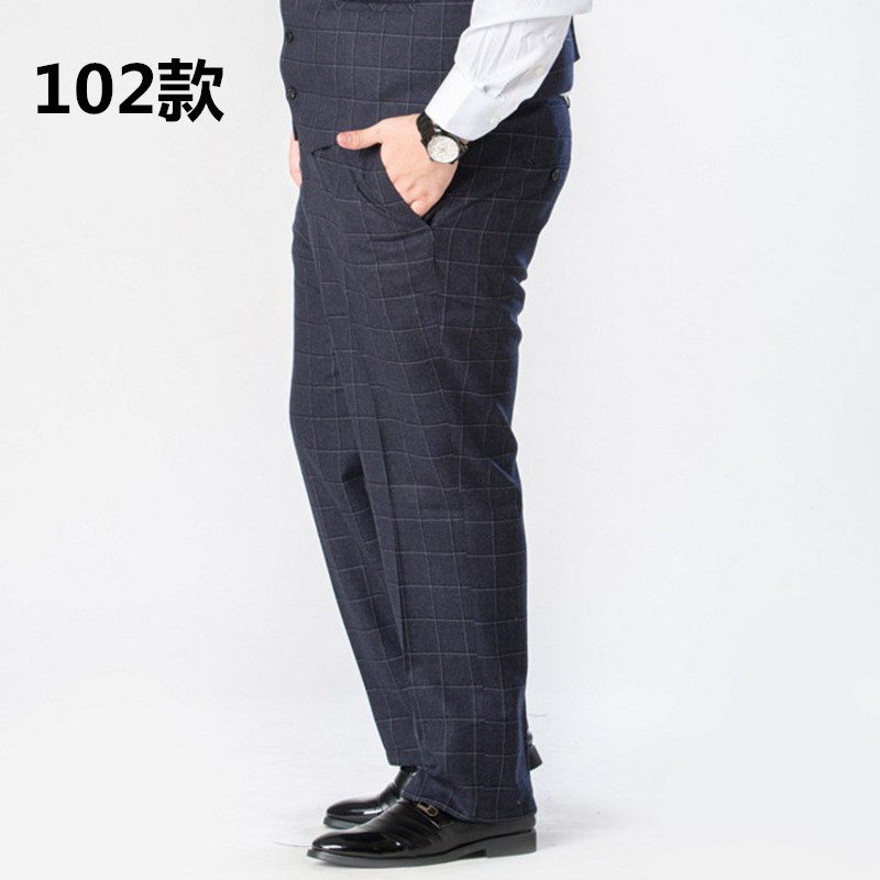 Men's large size trousers plus fat to increase fat spring fat man plaid thick section loose wedding loose dress thin section