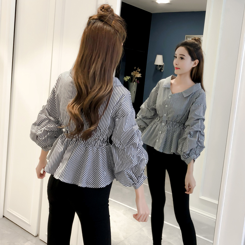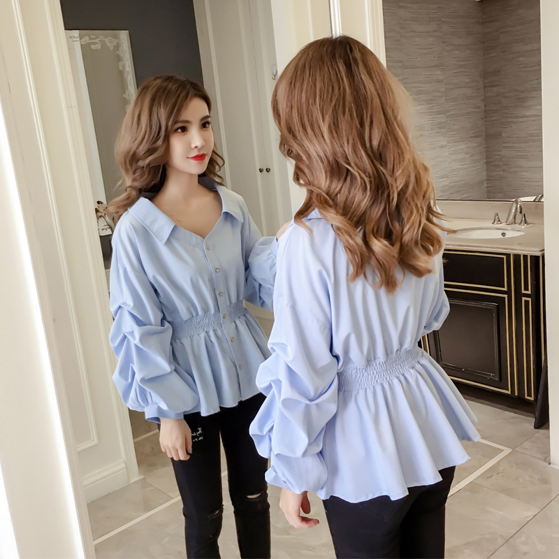 2022 Spring loaded new Han Fan long sleeve white shirt female doll shirt student chic blouse to collect waist lantern sleeve shirt