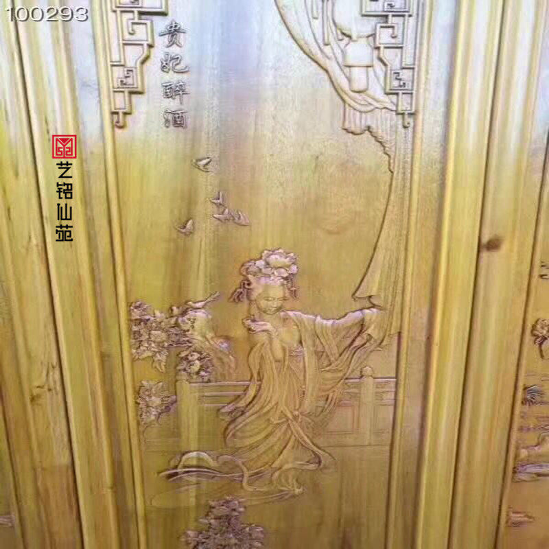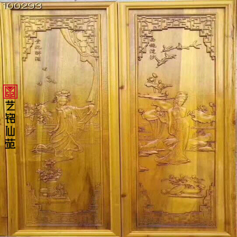 Nanmu four beauties hanging screen Mahogany three-dimensional carving gold silk Nan screen ornaments Solid wood living room study hanging screen