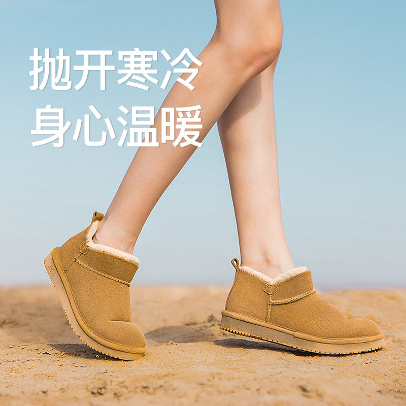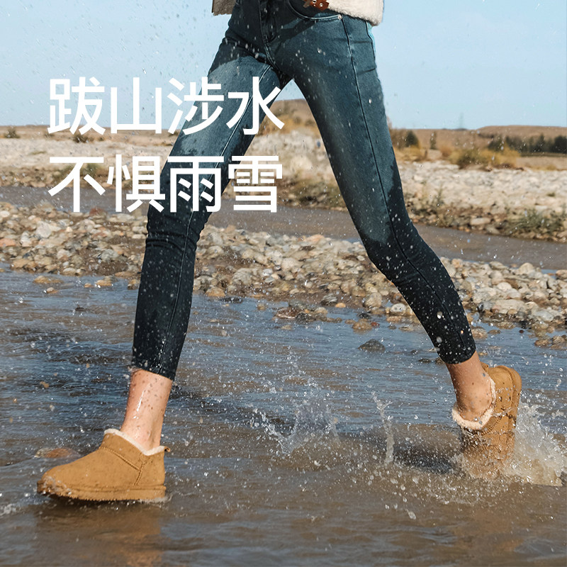 UBZ waterproof snow boots women's pedal 2022 new thickening shallow mouth boots bread shoes winter plus velvet cotton shoes