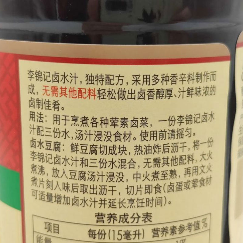 Li Jinkee Brine Juice 410ml * 2 bottles Home Homemade Halogen Bean Dry Halogen Beef Chicken Claw Cooking Brine seasoning