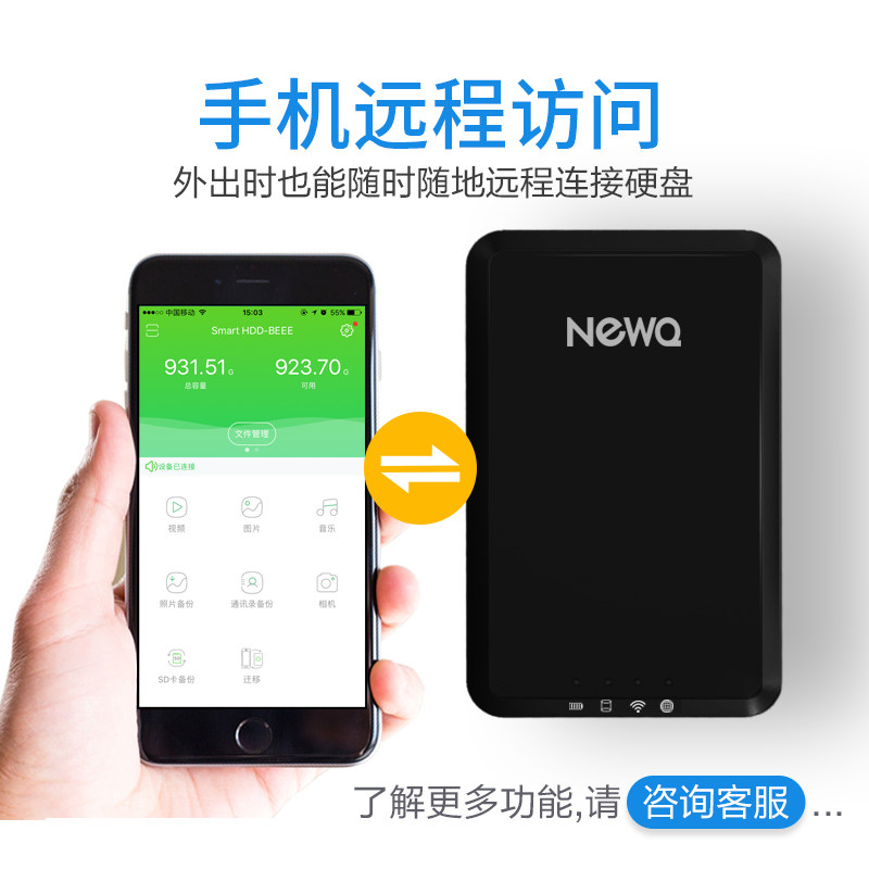 NewQ F1 smart wireless mobile hard disk 1t mobile phone wifi cloud storage External hard disk U disk Digital Companion
