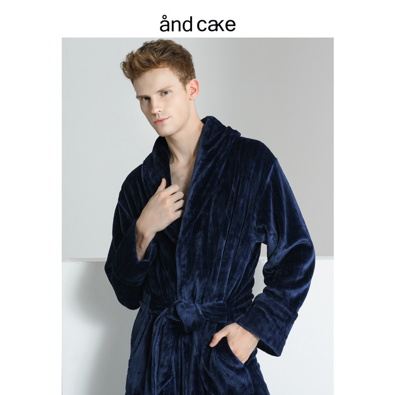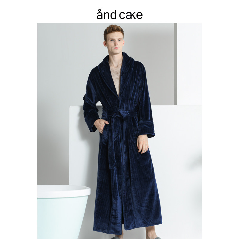 Sleeping robe male winter coral suede bathrobe thickened lengthened in morning gown flannel pyjamas for men's autumn and winter large size bathrobe