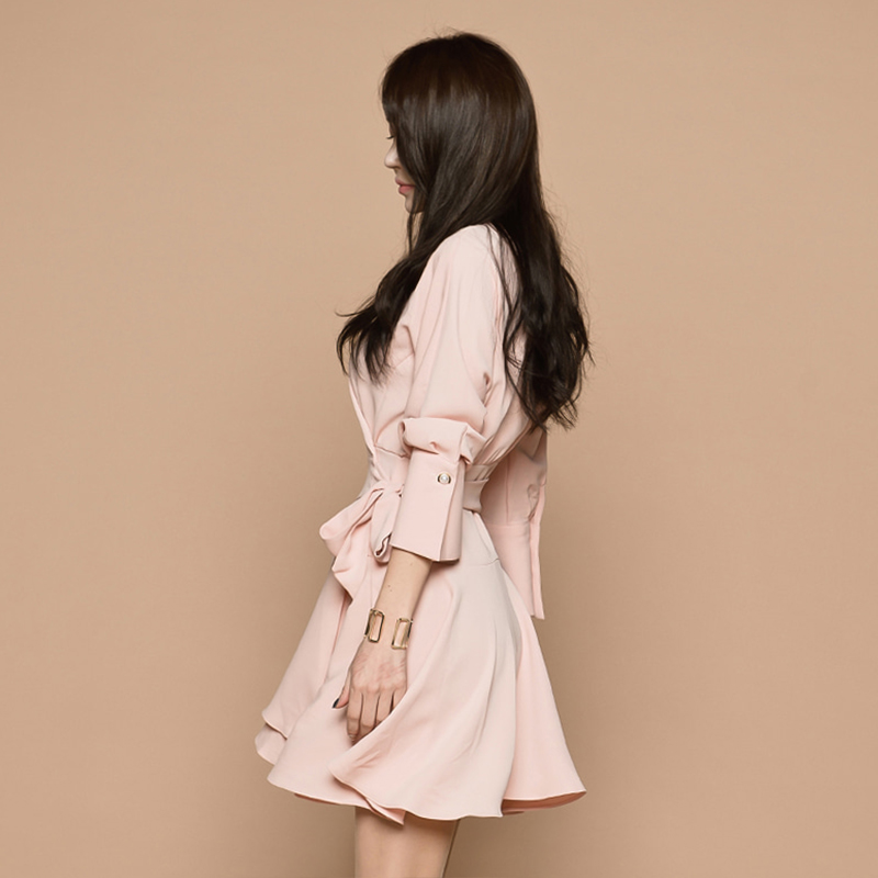Goddess Fan OL temperament is thin and feminine dress 2018 autumn new suit collar bow long sleeve