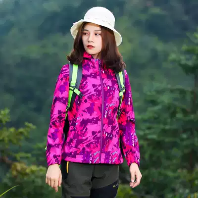 Outdoor camouflage soft shell jacket Women's top Slim-fit water repellent jacket Plus-size jacket hooded fleece jacket cardigan
