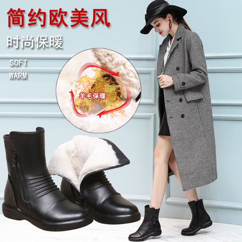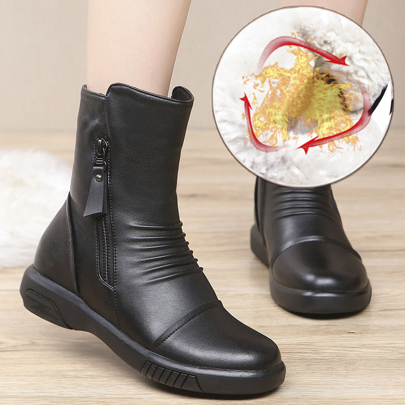 Mom Cotton Shoes Winter Snow Ground Gush Non-slip Flat Bottom Mom Shoes New Middle Aged Warm Wool Short Boots Women Thick