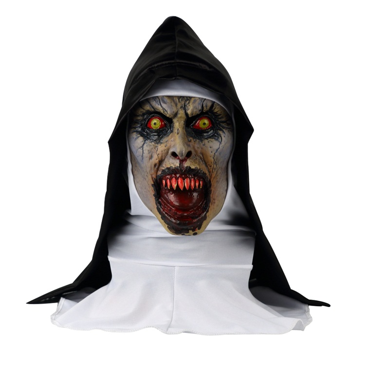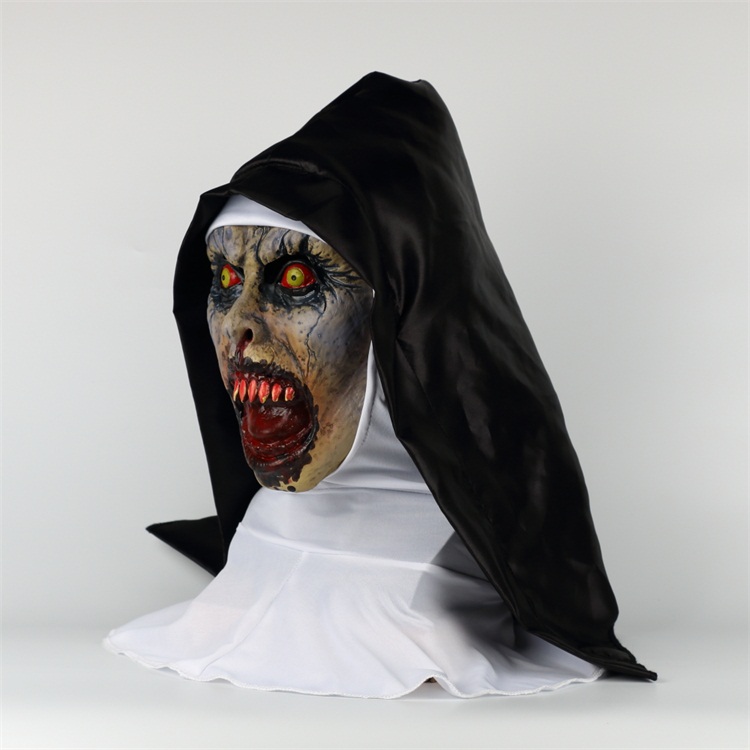 Nun headgear mask conjuring horror ghost face scary halloween performance funny funny live cos props