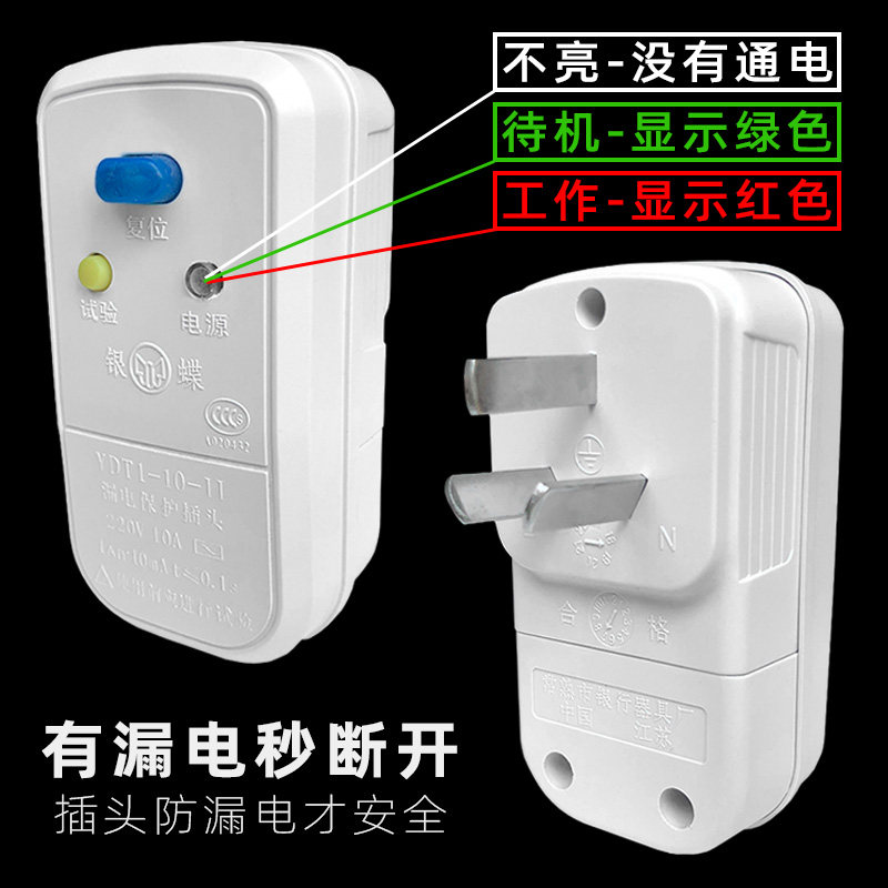 Leakage protection plug leakage water heater small kitchen treasure overload protector anti-leakage switch earth leakage Bao household