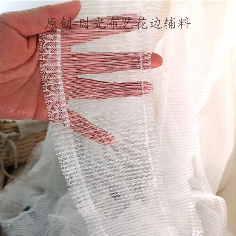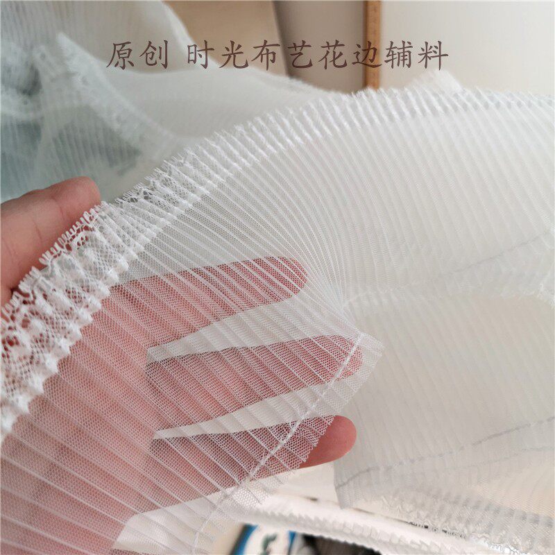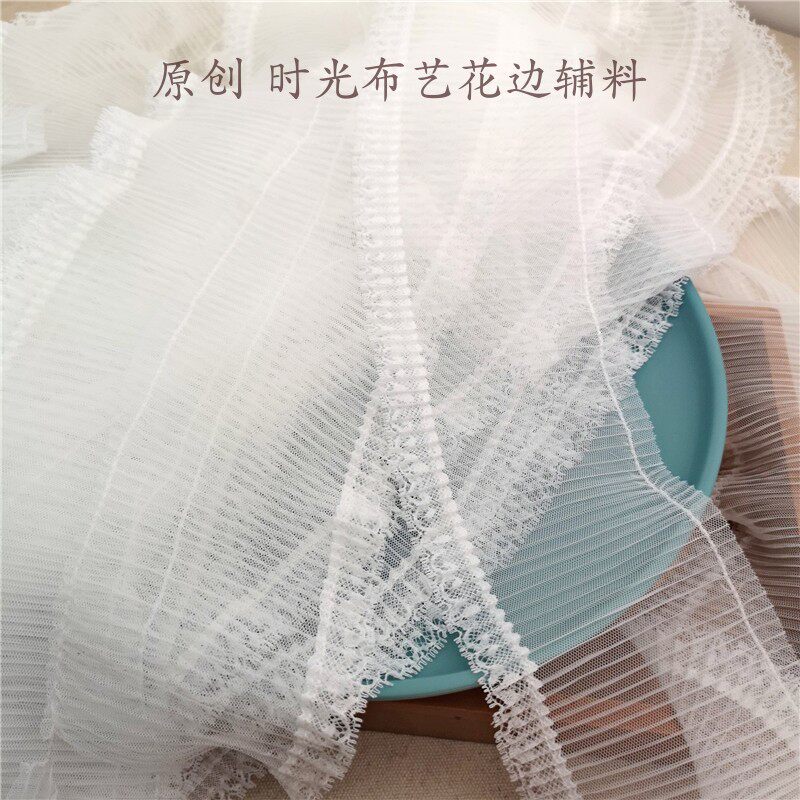 Black and white base pleated wide mesh lace dress skirt neckline cuffs doll lace accessories decoration lengthened