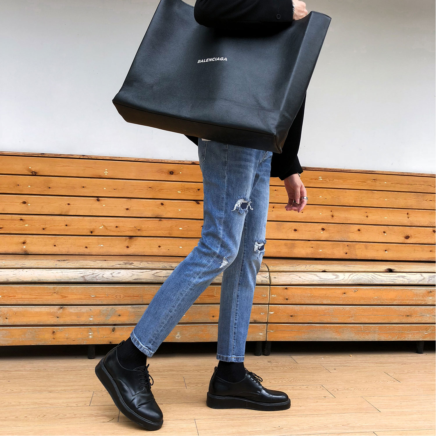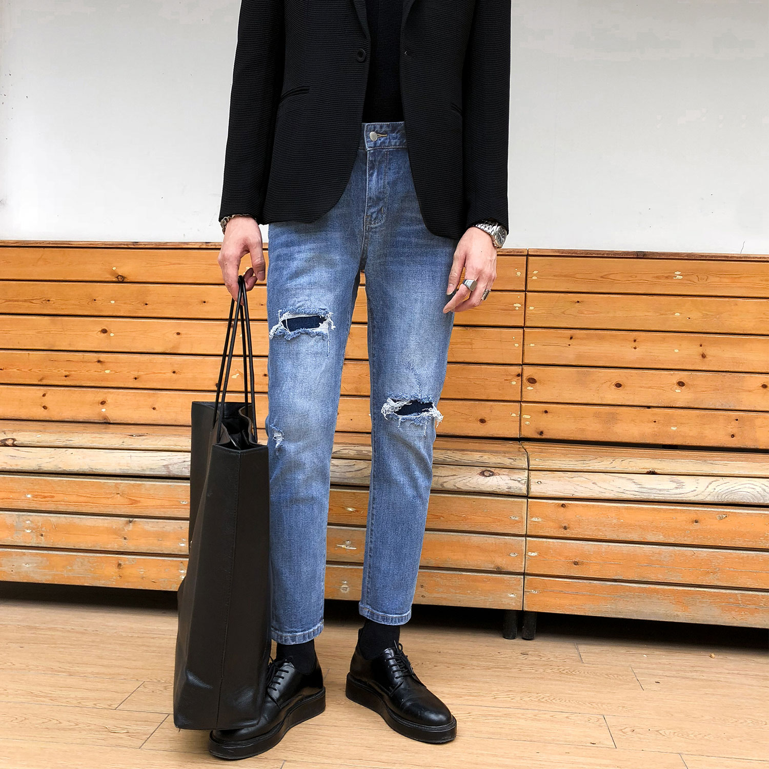 South Korea Dongdaemun 2022 Chunqiu Ji Cave Jeans Men Casual repair minor feet Han version 90% Pants Tide