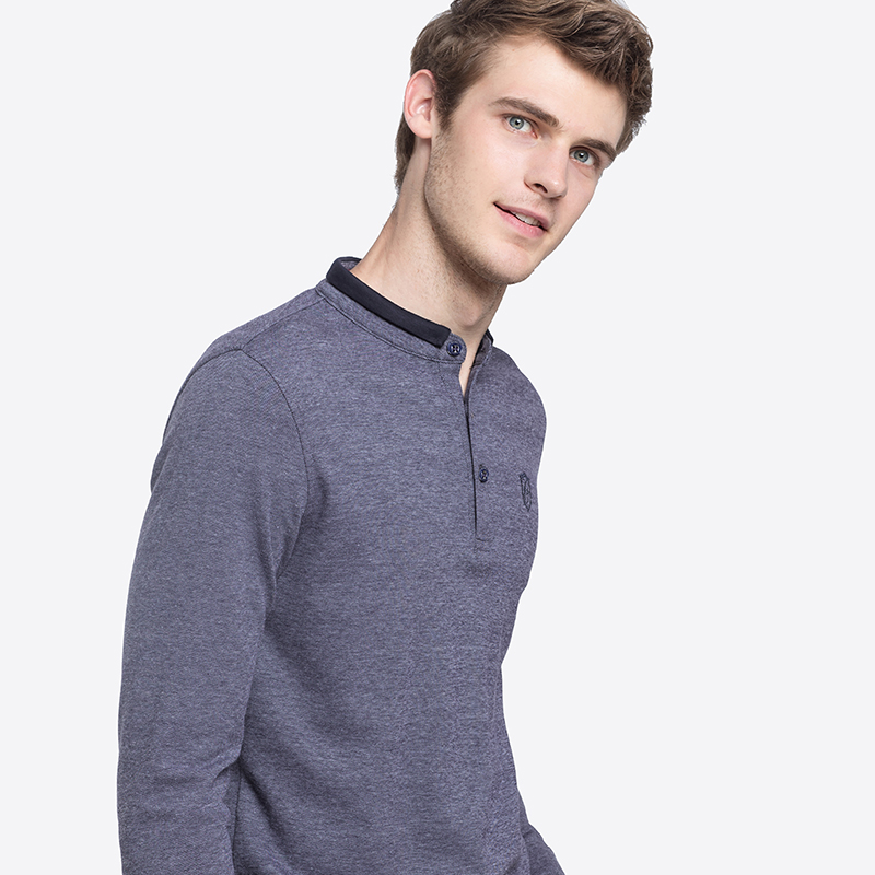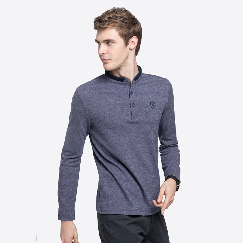 Camel camel autumn long sleeve men's lapel backing standard men's youth pure T-shirt D8A265278