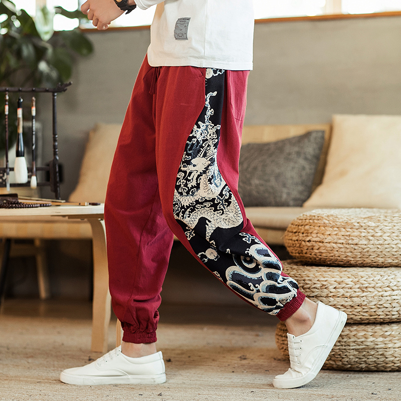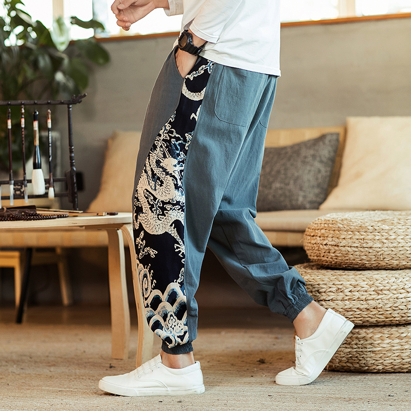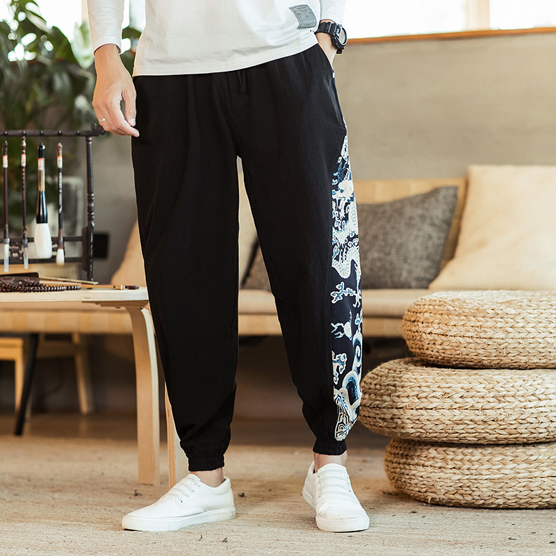 Ethnic Chinese Wind Loose Flax Casual Pants Male size Trends Fat People Bunches Light Cage Pants Hip Hop Pants Spring Autumn