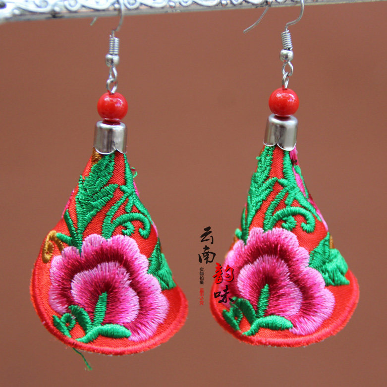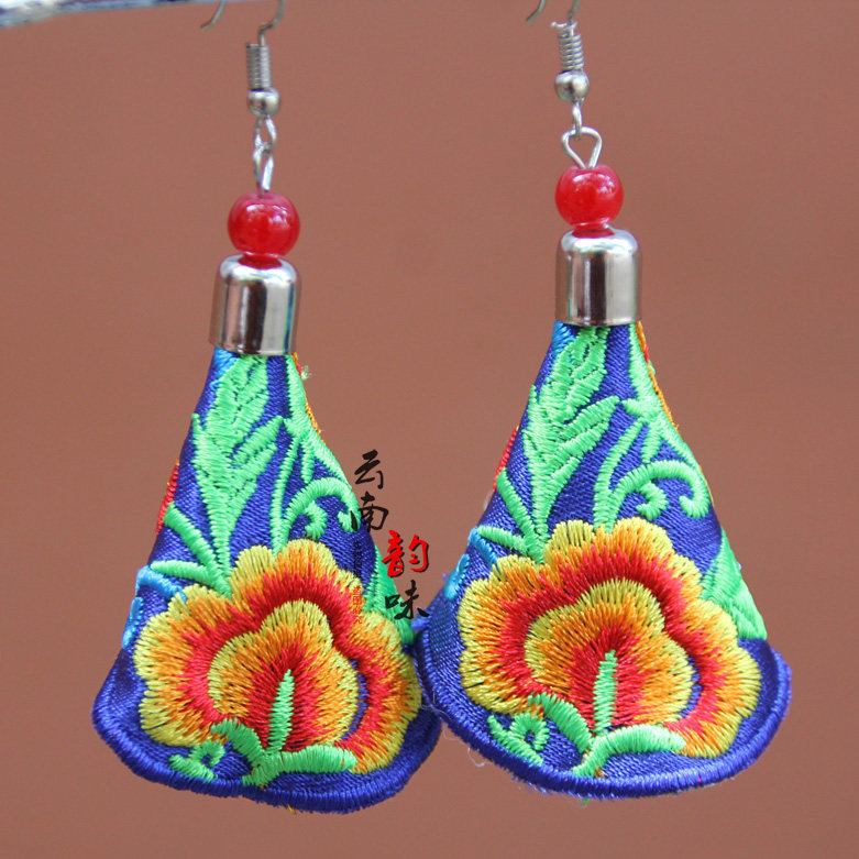 Chinese style retro fabric embroidered earrings women's accessories temperament all-match pendant jewelry Yunnan ethnic style special offer