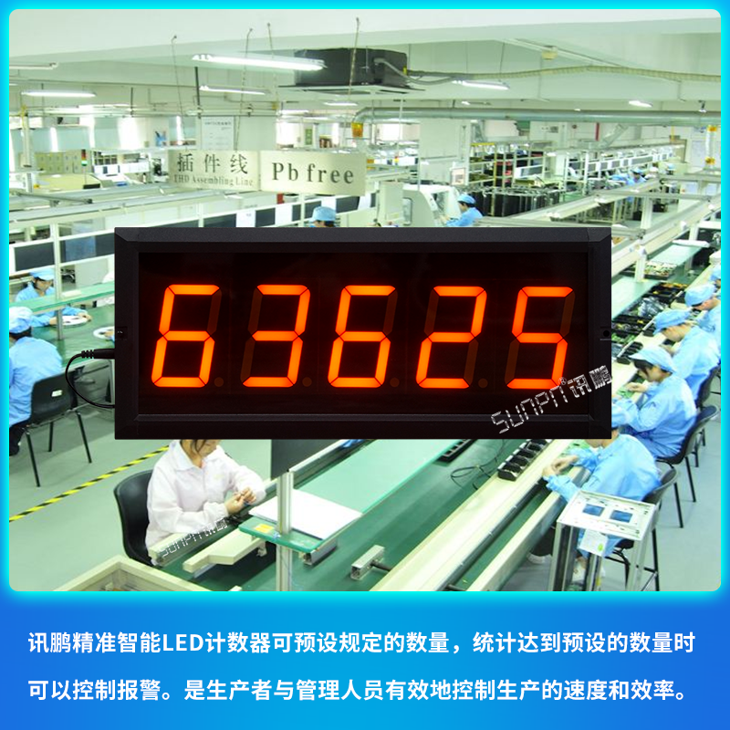 Xunpeng large screen LED counter display photoelectric automatic induction LED kanban light industrial production counting kanban